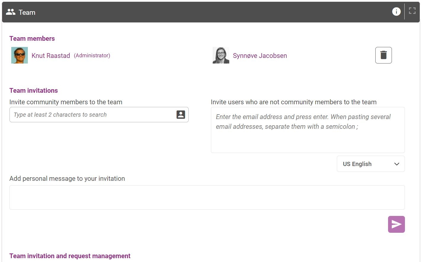 This is where you can view and manage team members. You will be able to see all team members and invite or remove members.