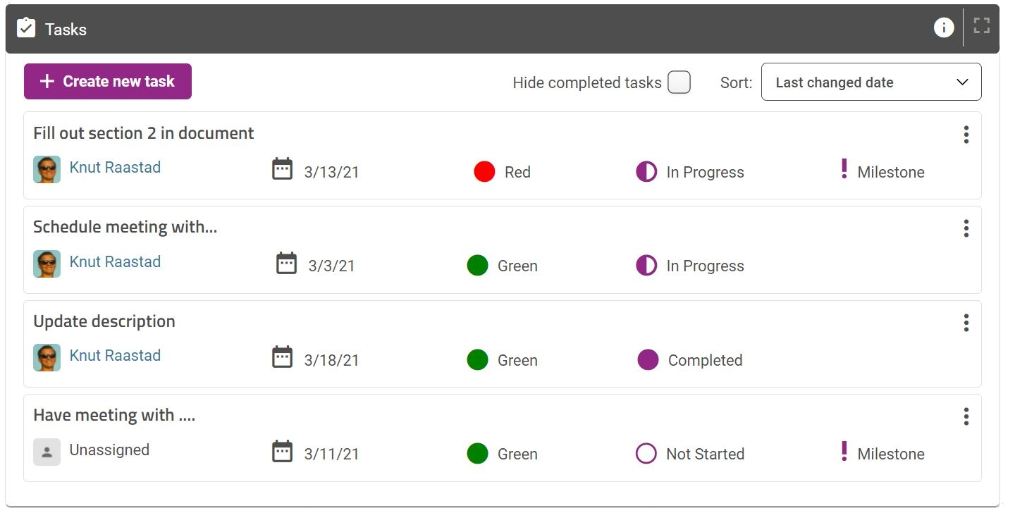 Use tasks to keep the moving forward by allocating tasks with due dates to team members.